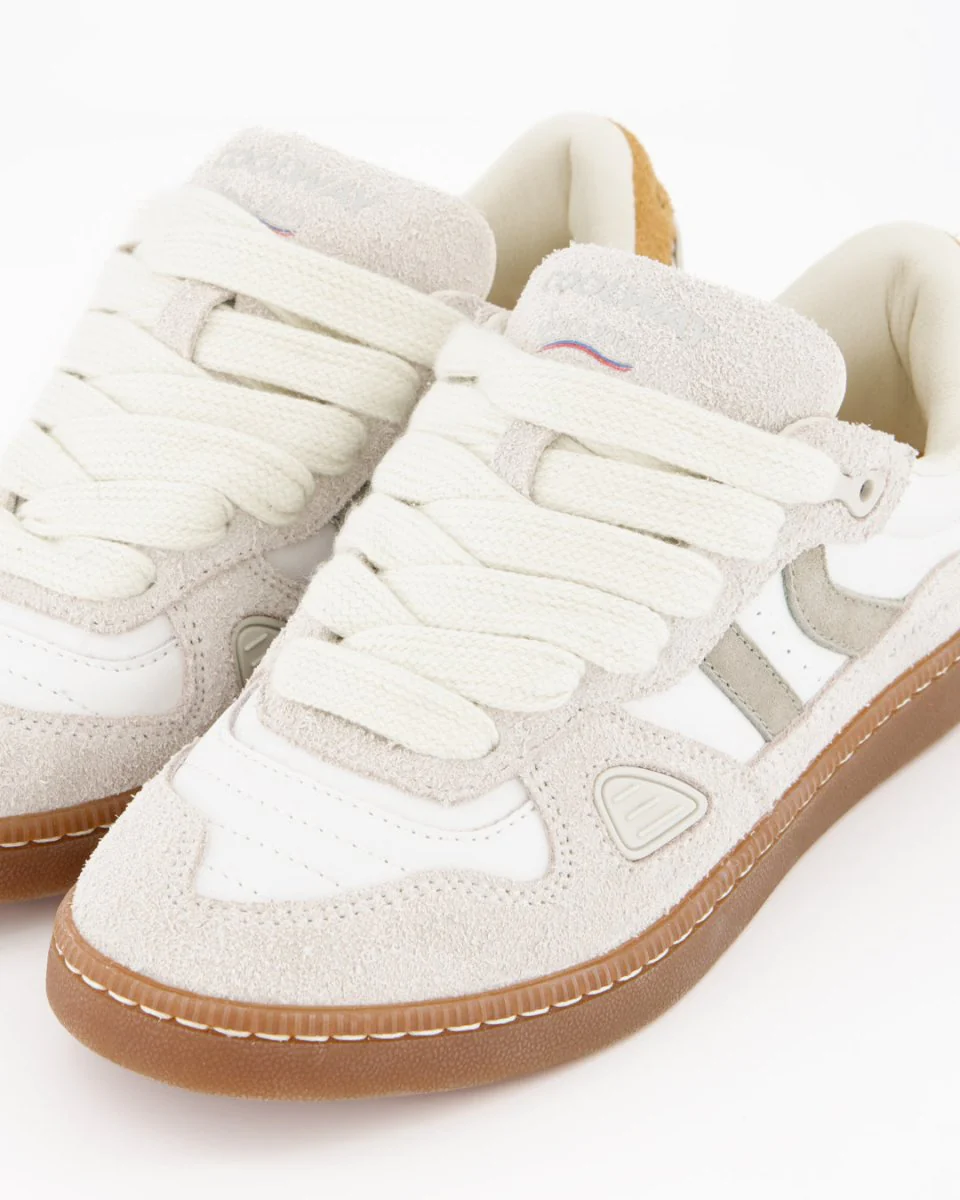 - Premium split suede leather with contrast panels for instant character.