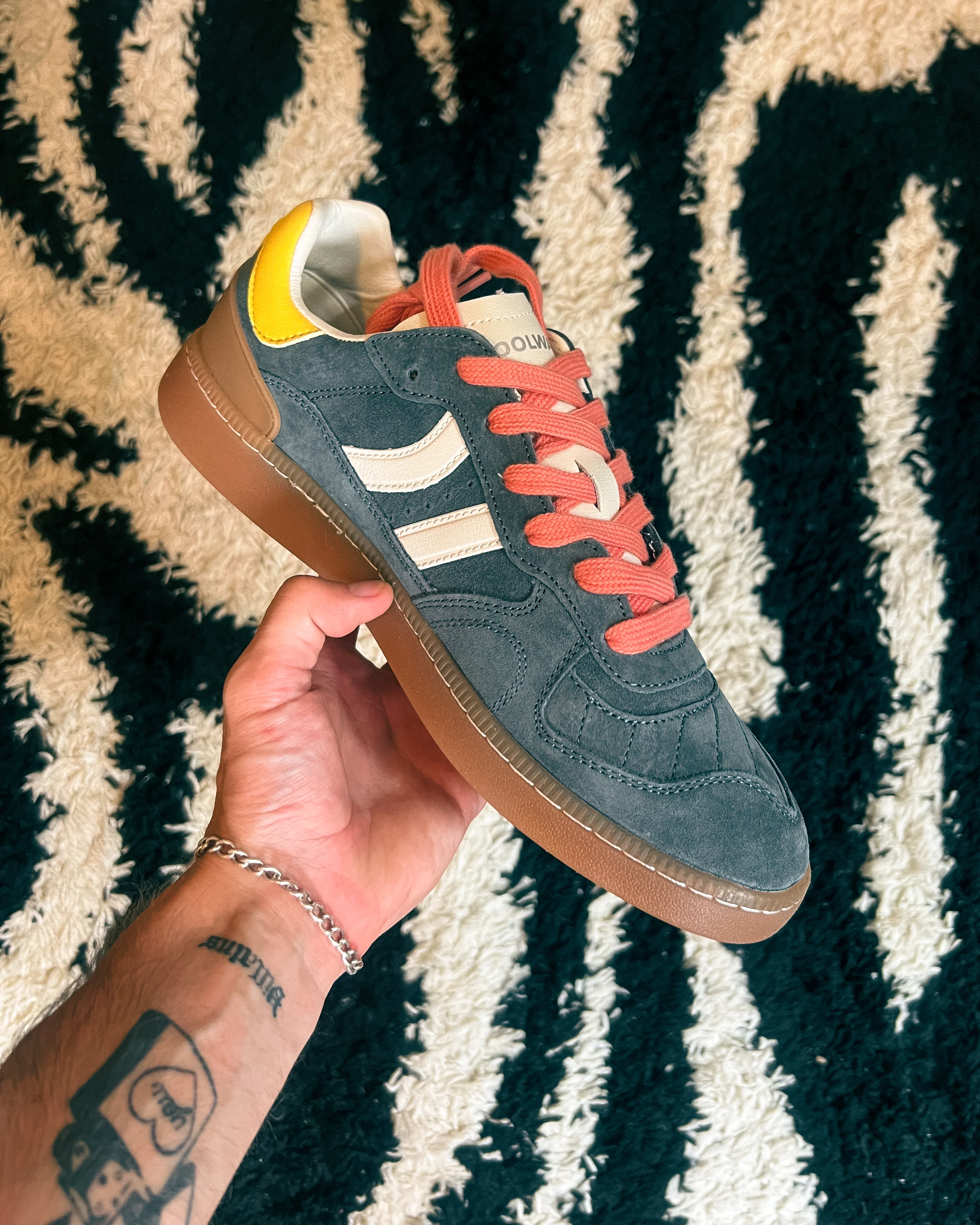 - Two-tone laces and sporty details that make the look.